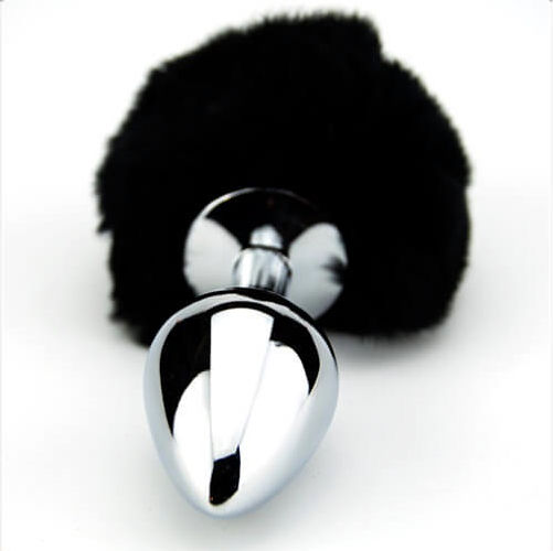 The plug has a teardrop shape allowing for easy insertion, and a wide base for safety. The faux fur bunny tail is perfect for animal role play and adds that little bit of aesthetic pleasure. The plug is great for novice, intermediate and advanced anal players. The metal plug is easy to clean due to the smooth surface, is suitable for temperature play and can be used with water-, silicone- or oil-based lubricants. The product comes in a sealed clear bag placed inside a black drawstring bag.