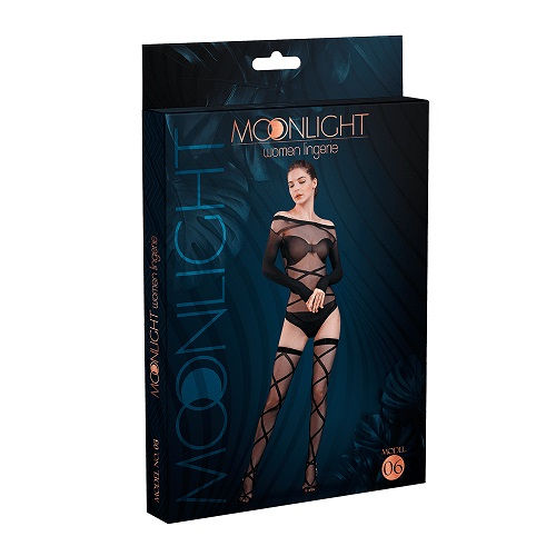 Add a touch of elegance to your lingerie catalogue with this delicate Moonlight Bardot-style body and stockings set. Designed to land a commanding and chic look to the wearer, this alluring outfit is made of a stretchy and comfortable nylon material and features a simple but affective criss-cross pattern. Introduce your customers to the sheer power of Moonlight and let them dazzle in this stylish body and matching pair of stockings.